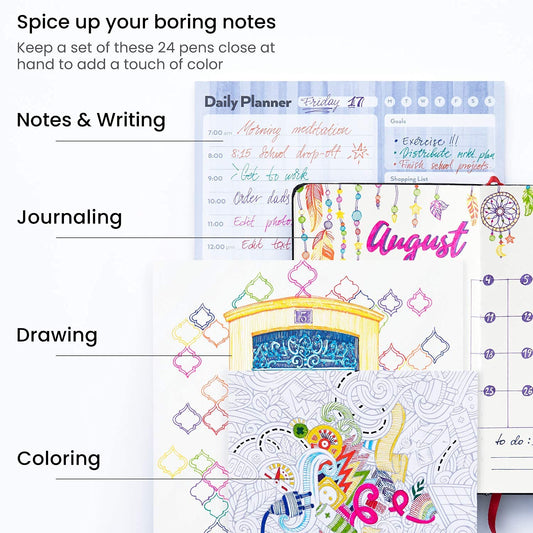 ARTEZA Rollerball Pens Fine Point, Set of 24 Colored Pens with Liquid Ink, Extra Fine 0.5 mm Needle Tip Pen