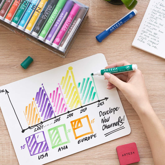 ARTEZA Dry Erase Markers Pack of 52, Chisel Tip, 12 Assorted Colors with Low-Odor Ink, Whiteboard Pens