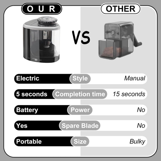 Sonuimy Battery Pencil sharpeners for Colored Pencils, Portable Electric Pencil Sharpener for #2 No.2 HB Pencils (6-8mm), Battery Operated sharpeners for Artist Classroom School Work Office -Black