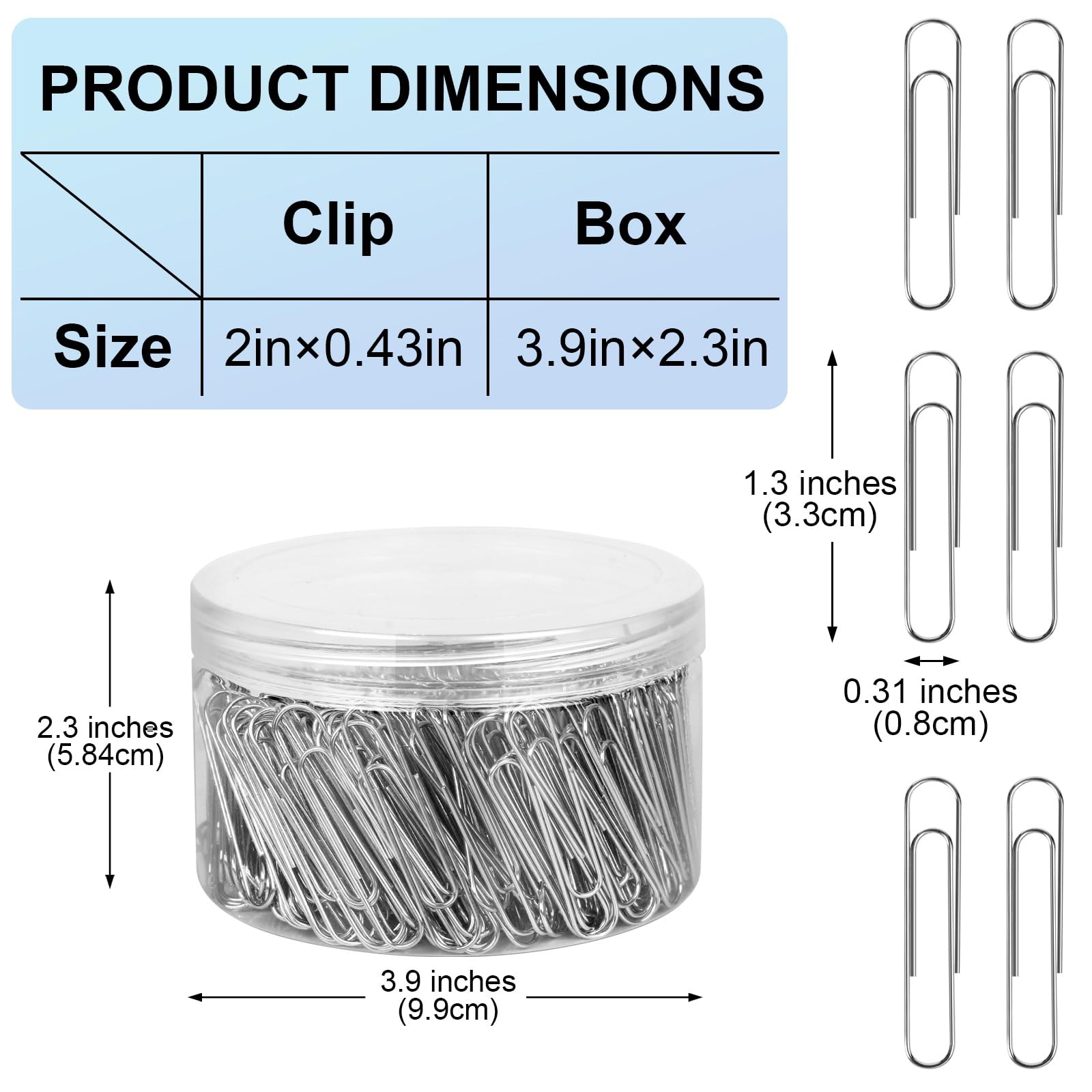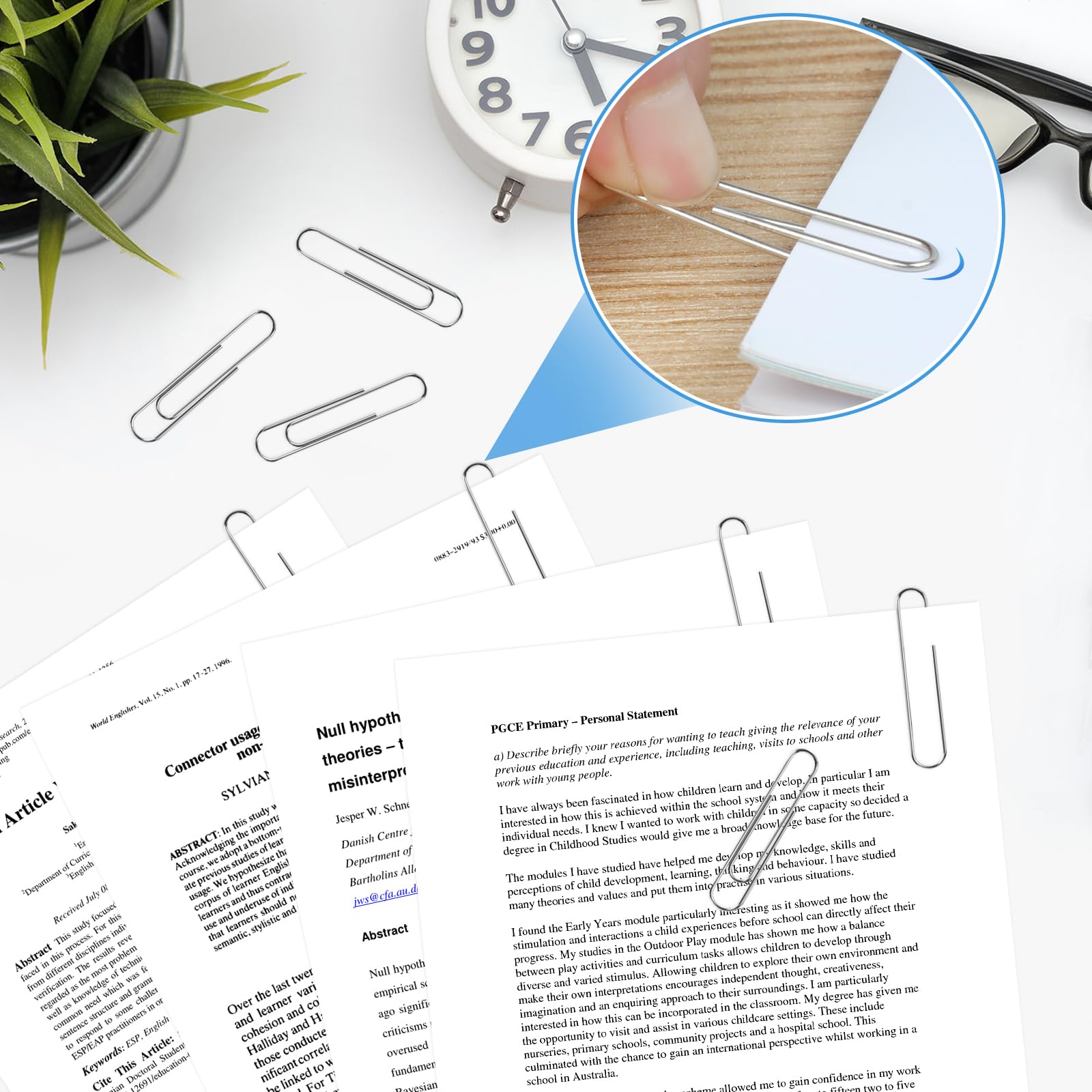 - HIGH QUALITY: Crafted with superior metal, these Large Paper Clips boast a smooth surface and impressive durability, preventing rust and ensuring a secure, non-slip grip without scratching the paper. 700 Pcs 1.3 inch silver Paperclips included, you'll have more than enough for all your needs.