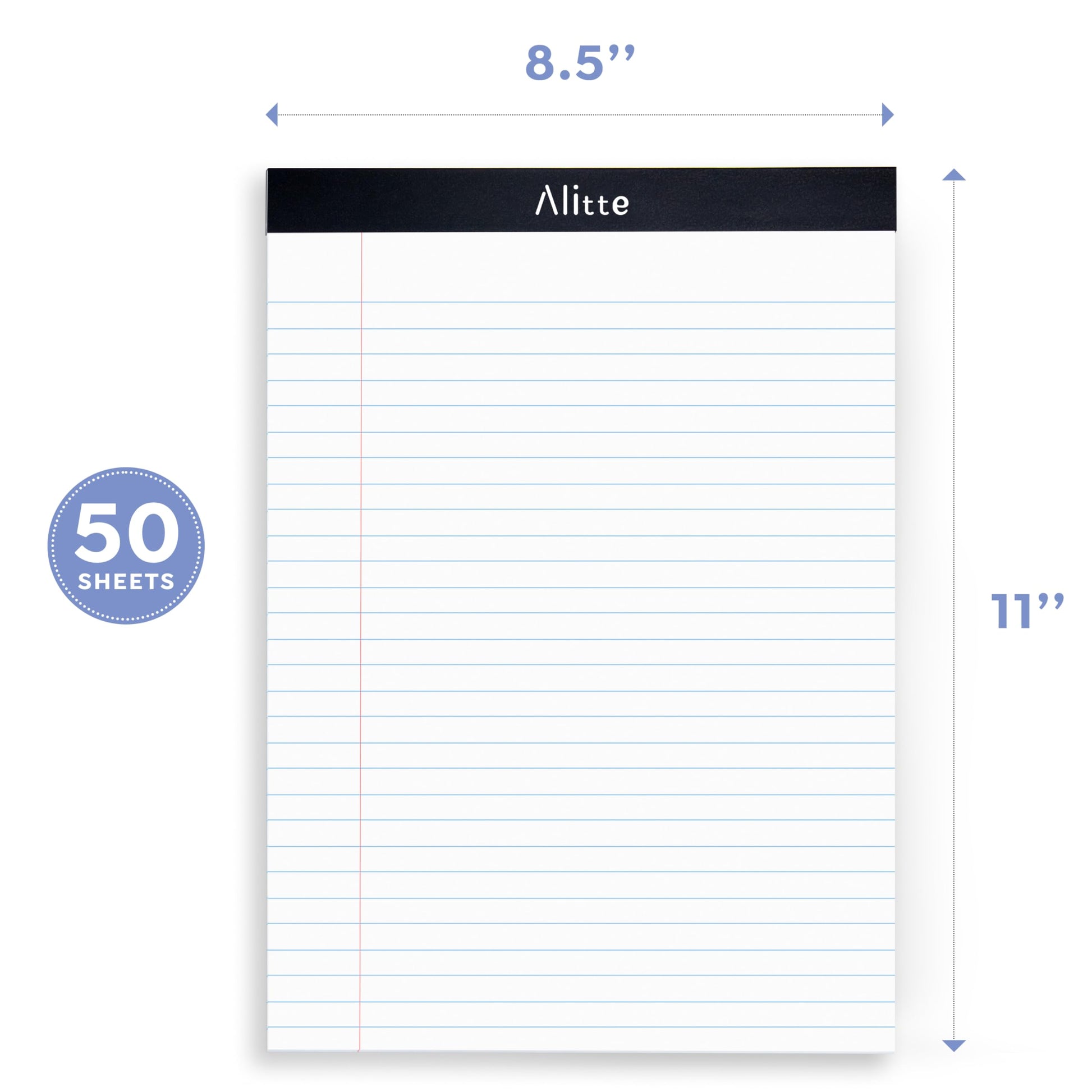 Alitte Legal Notepads 8.5 x 11 | Pack of 12 | Perforated Wide Ruled Writing Pad |50 Sheets Per Notebook