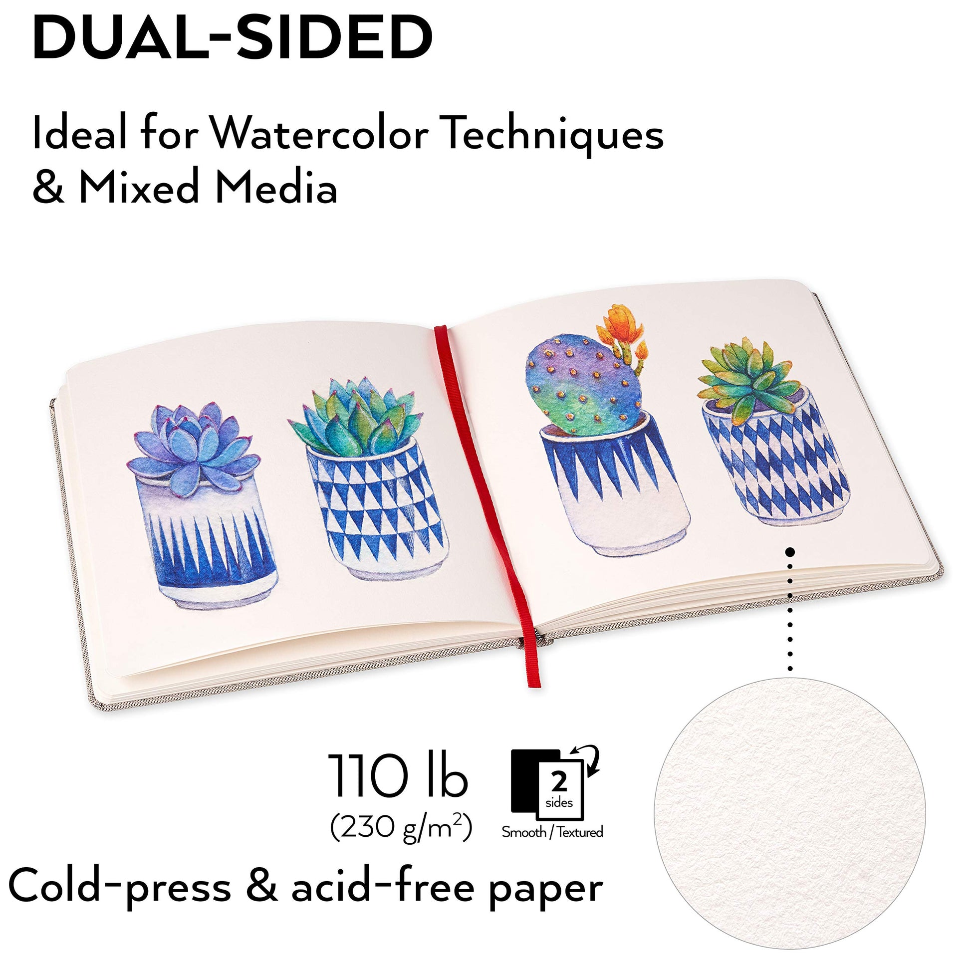 - Hardcover Watercolor Book: Its sturdy and durable hardcover makes this an ideal travel watercolor journal. Use it inside or outside knowing your pages are protected from bending, tearing or dirt.