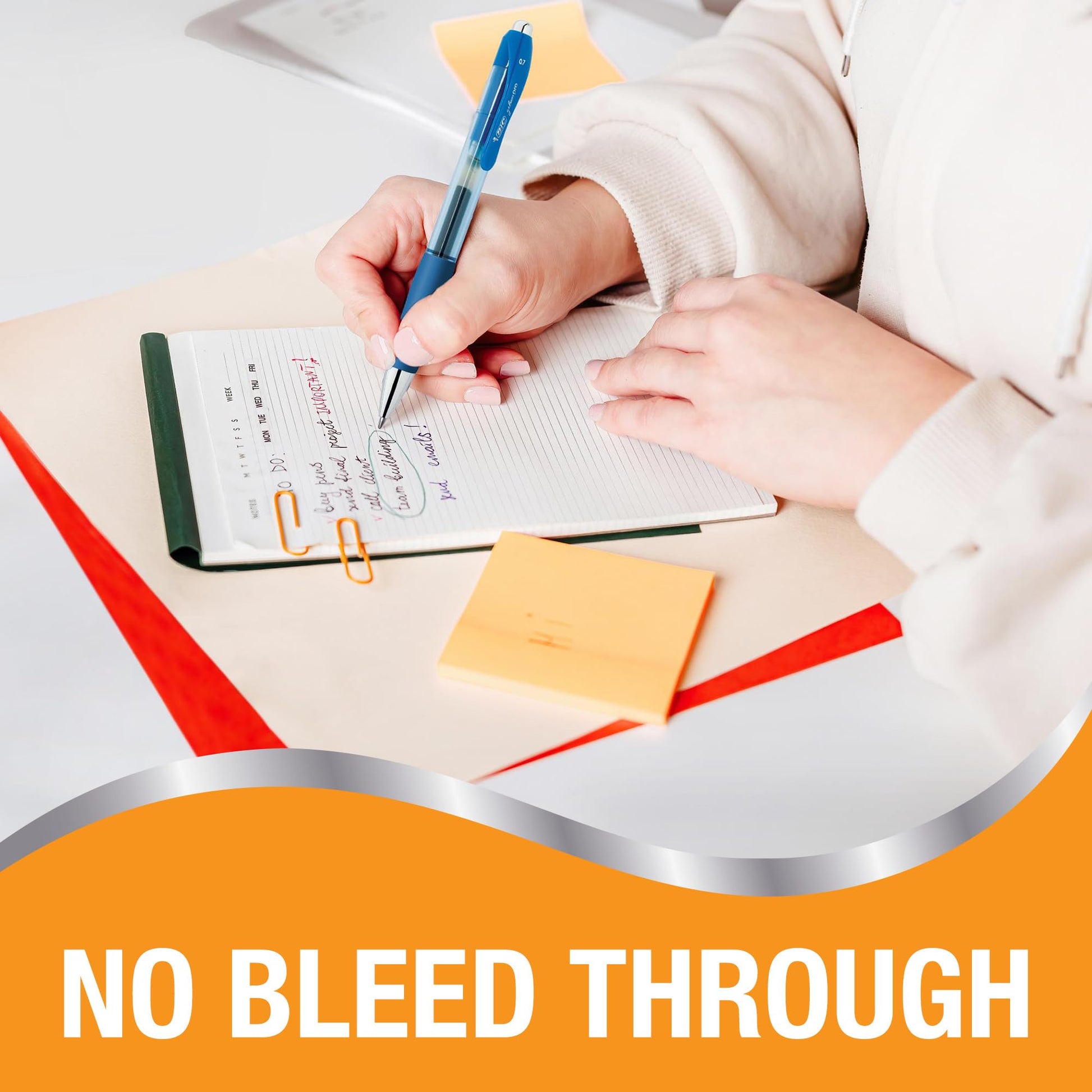 - NO BLEED THROUGH: With BIC's Gelocity Pro Blue Gel Pens, you won't have to worry about bleed through