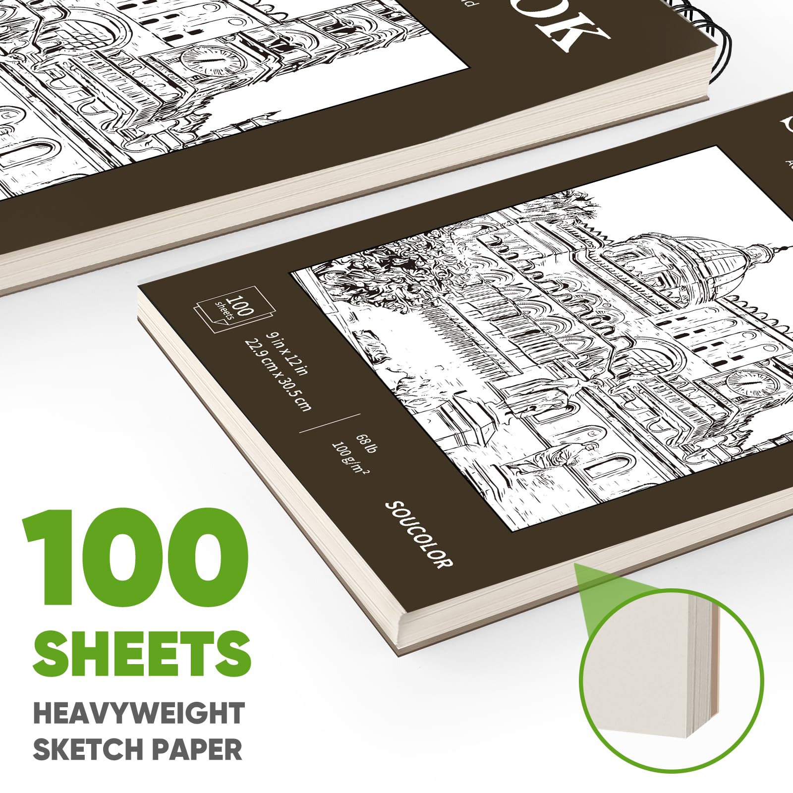 - 【Premium Paper Quality】Professional Sketch Book Drawing Pads. Great size 9 x 12 inches for all levels of artists. 100 sheets in each sketchpad, total of 100 premium sketch pad paper sheets at the affordable price. Nice texture for drawing, sketching. Excellent art paper book gift for who enjoys sketching, drawing, illustrating, painting, writing and creating art. Great sketchbook for using with graphite pencils, colored pencils, charcoal, pens, soft oil pastel, sketching sticks and more.