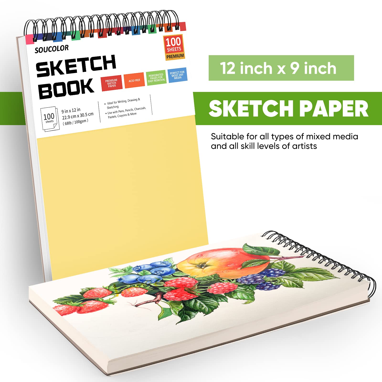 - 【Premium Paper Quality】Professional Sketch Book Drawing Pads. Great size 9 x 12 inches for all levels of artists. 100 sheets in each sketchpad, total of 100 premium sketch pad paper sheets at the affordable price. Nice texture for drawing, sketching. Excellent art paper book gift for who enjoys sketching, drawing, illustrating, painting, writing and creating art. Great sketchbook for using with graphite pencils, colored pencils, charcoal, pens, soft oil pastel, sketching sticks and more.