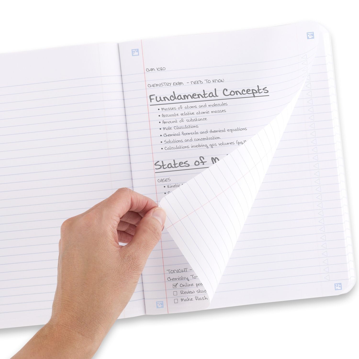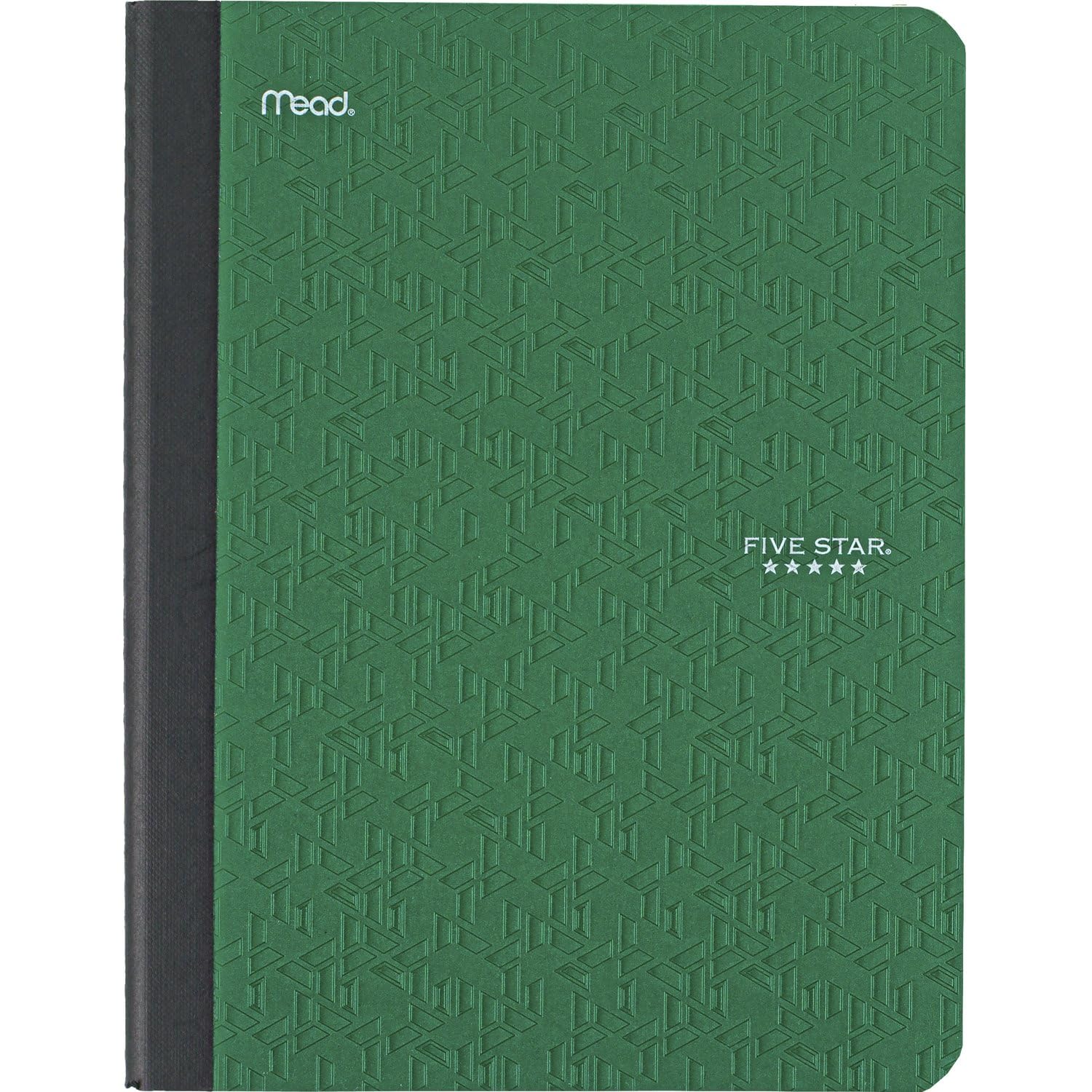 Details: LASTS ALL YEAR. GUARANTEED! The Five Star College Ruled Composition Book 4 Pack is a great choice for your notes this year. Scan, study and organize your notes with the Five Star App. Create instant flashcards and sync your notes to Google Drive to access them anywhere from any device. This composition book has 80 double-sided, college ruled sheets of high-quality paper. College ruled sheets are securely sewn in, and the durable one-piece plastic cover helps protect notes all year long. The cover lies flat when open for easy notetaking. Smooth wireless sewn binding won’t snag on your clothing or backpack. Sheet size measures 7-1/2" x 9-3/4". This 4 pack is available in Forest Green, Pacific Blue, Fire Red and Black. Guarantee is valid for one year from purchase date. Does not cover misuse. Go to fivestarbuiltstrong.com for details.