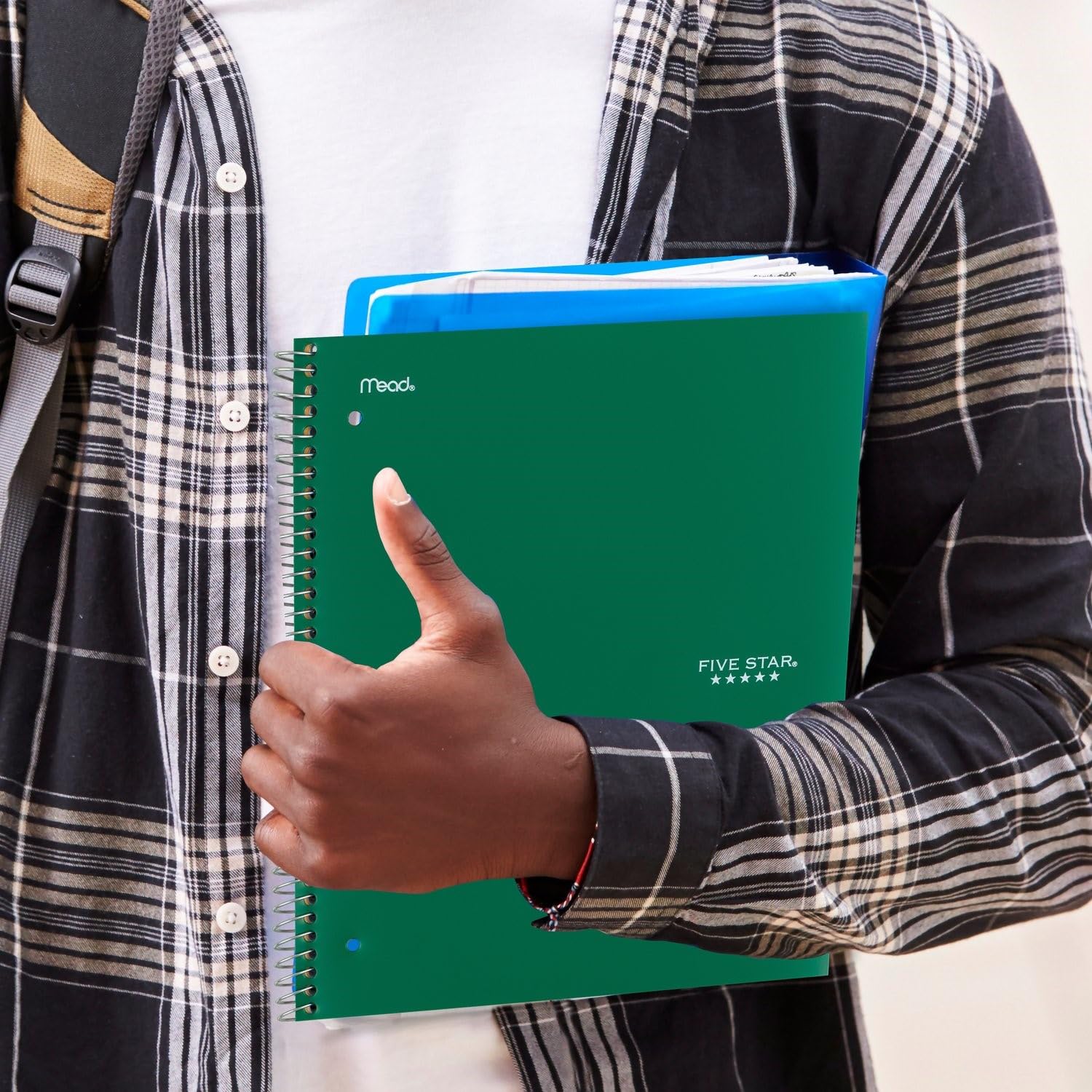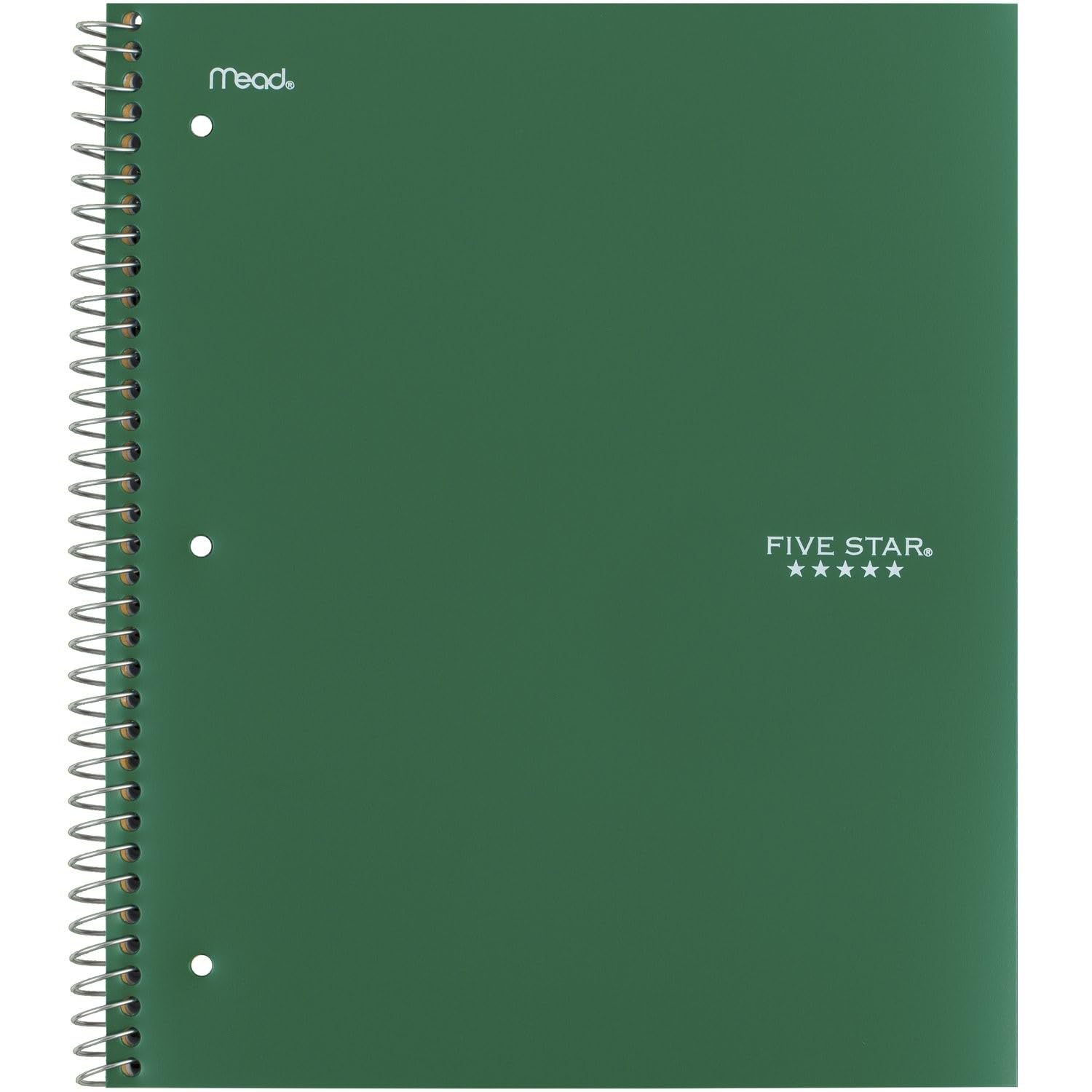 Five Star Spiral Notebook + Study App, 5 Subject, College Ruled Paper, Fights Ink Bleed, Water Resistant Cover, 8-1/2" x 11", 200 Sheets, Green (72079)