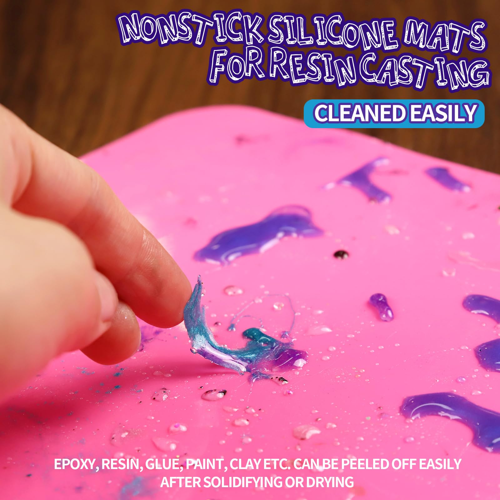 - Premium Silicone Mat: High quality silicone mat, non-stick, non-skid, heat-resistant, long-lasting. Epoxy, resin, glue, paint, clay etc can be peeled off easily after solidify, great tool for resin accessories and other DIY arts and crafts.