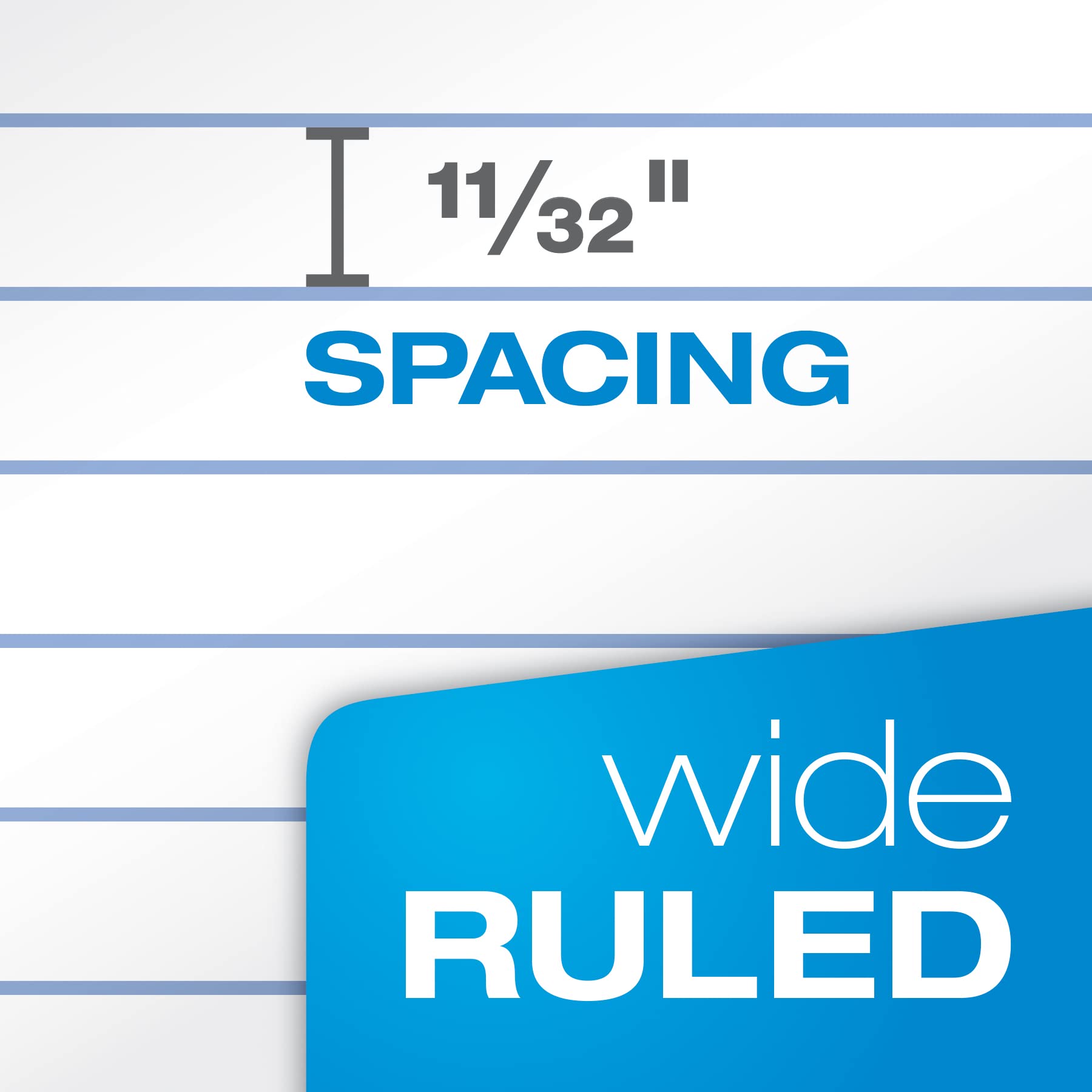 - 8" x 10-1/2" Wide ruled notebooks are perfect for large handwriting; 70 double sided sheets (7-1/2" x 10-1/2" detached) for 140 pages; 3 hole punched to fit your binder