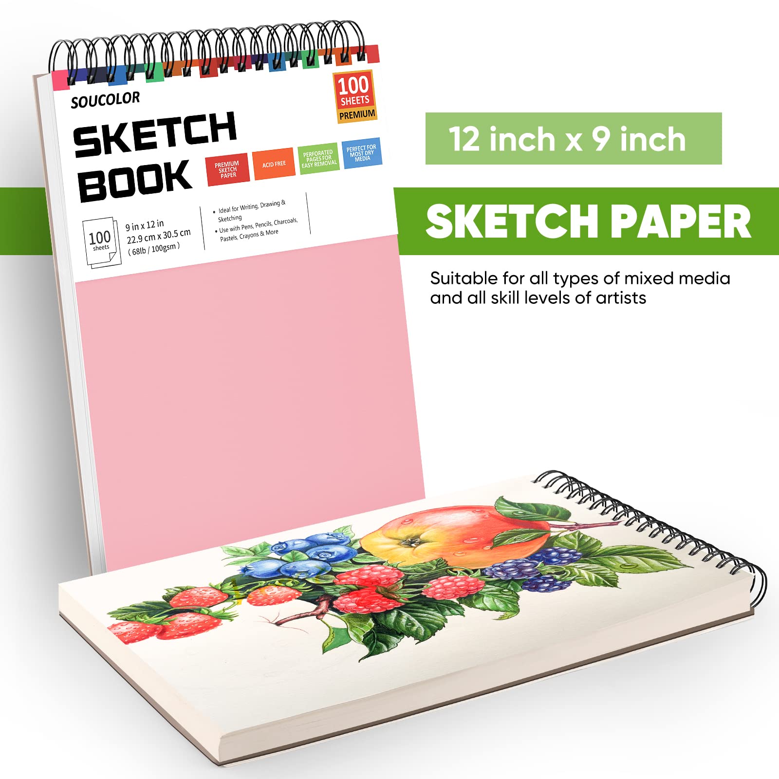 - 【Premium Paper Quality】Professional Sketch Book Drawing Pads. Great size 9 x 12 inches for all levels of artists. 100 sheets in each sketchpad, total of 100 premium sketch pad paper sheets at the affordable price. Nice texture for drawing, sketching. Excellent art paper book gift for who enjoys sketching, drawing, illustrating, painting, writing and creating art. Great sketchbook for using with graphite pencils, colored pencils, charcoal, pens, soft oil pastel, sketching sticks and more.