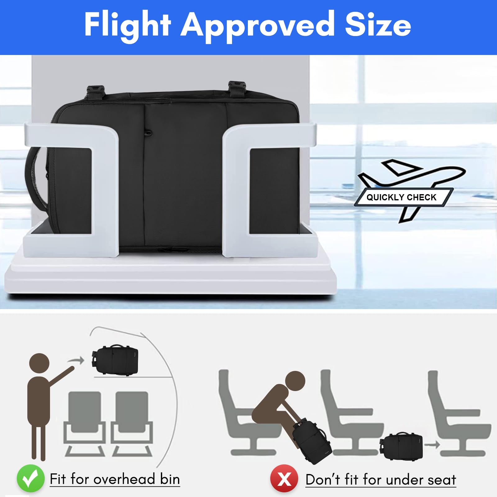 - Flight Approved Laptop Backpacks: 180 degree zipper closure helps you pass through the security check quickly. Travel essentials for men women fits overhead and under the seat. Carry on backpacks bag for traveling on airplane also complies with the airline carry-on policy standards, applicable for airlines such as Spirit, Jet Blue, Frontier. Note:If you want to bring it on board as personal items, we suggest you can consider Large. This X-Large is designed as a replacement for a trolley case