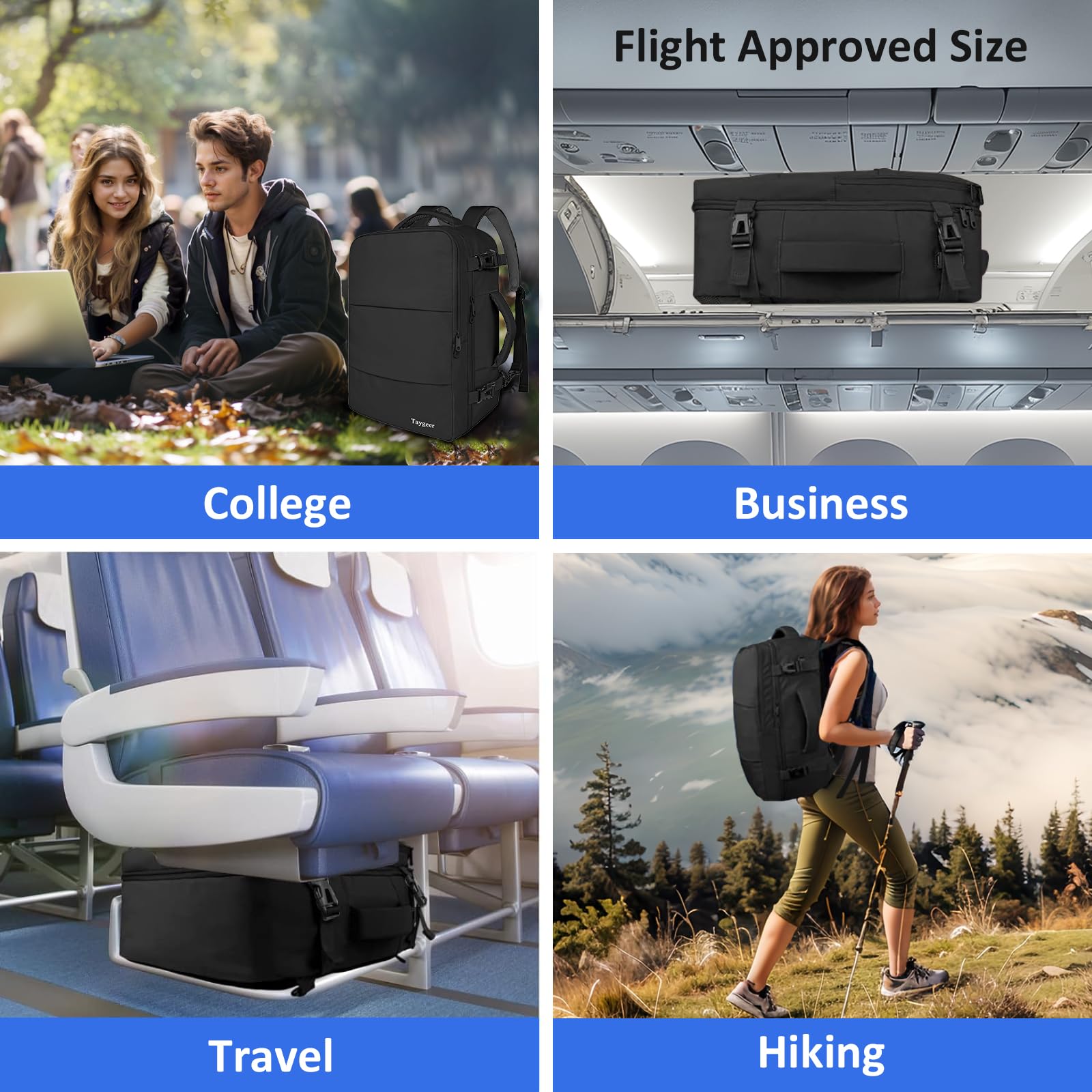 Taygeer Travel Laptop Backpack for Men Women, Airplane Approved Travel Backpack Suitcase with Usb Charging Port, Lightweight College 35l Luggage Bag 15.6inch Laptop Mochila Gifts for Business,Black